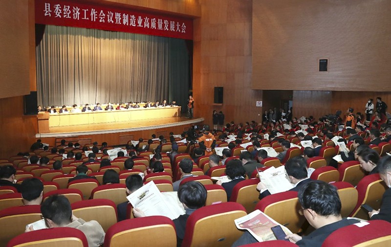 3月27日,縣委經濟工作會議暨制造業高質量發展大會召開,大會授予萬豐集團2019年度高質量發展功勛獎。董事局陳愛蓮主席出席會議并在主席臺就座。
