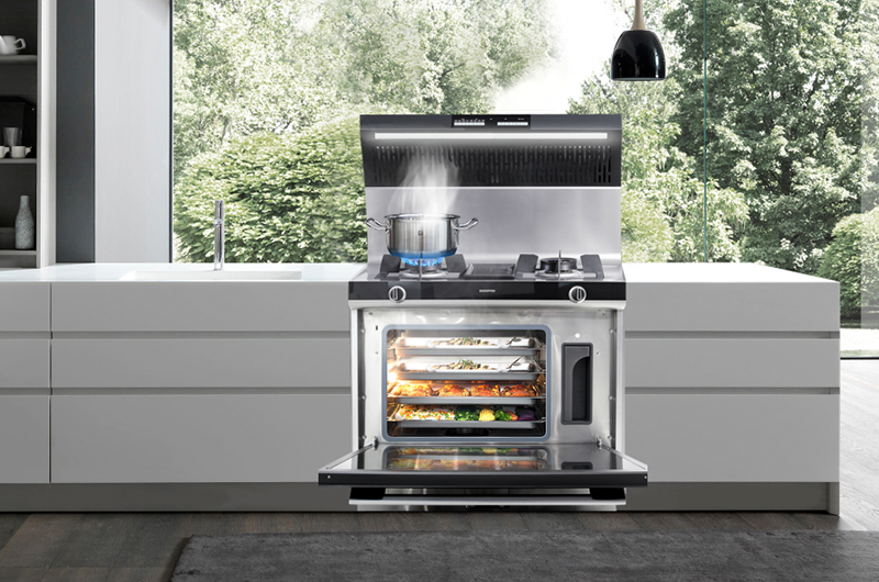在裝修廚房之初,很多人會考慮的問題是,如何才能完美平衡廚房空間的“廚電齊全”和“寬敞舒適”?或許,你正為無處安放的蒸箱大傷腦筋。你就不用再買一臺蒸箱,你只需要一臺蒸箱款集成灶(1臺集成灶=1臺吸油煙機+1臺燃氣灶+1臺蒸箱),輕松滿足下廚需求,完美!