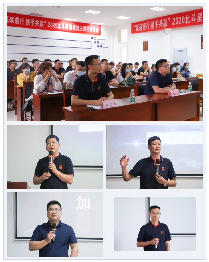 北斗星始終堅持以高端品質為先,推出的每一款產品都必須是精品,營銷中心來毅勇總監、制造部沈思恩總監、推廣部萬祥部長,招商部陳二偉部長分別作市場布局、工藝升級、政策解讀主題發言,堅持以市場為導向的戰略方針,挑戰行業工藝極限,提高行業標準與制造水平,打造行業前沿人才高地。