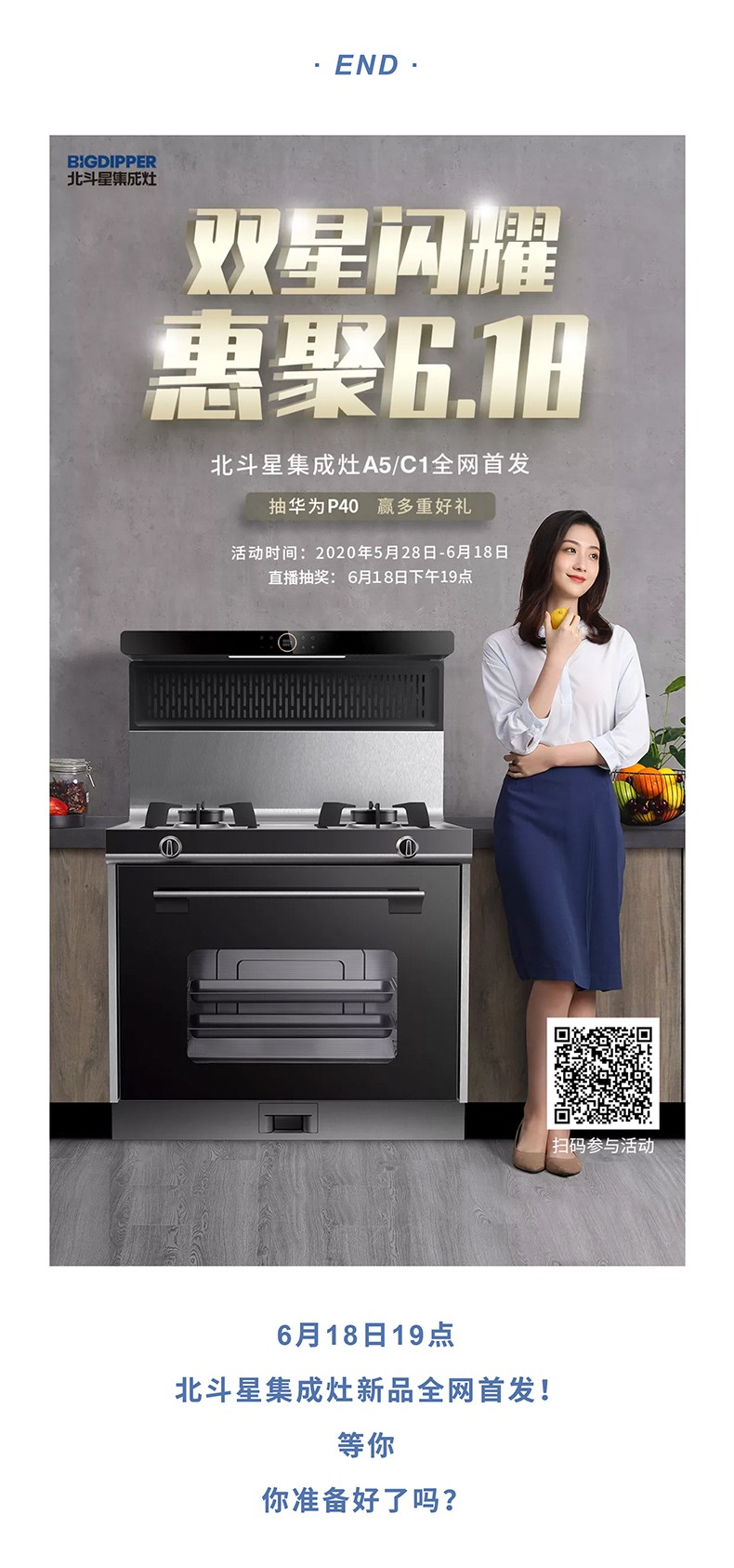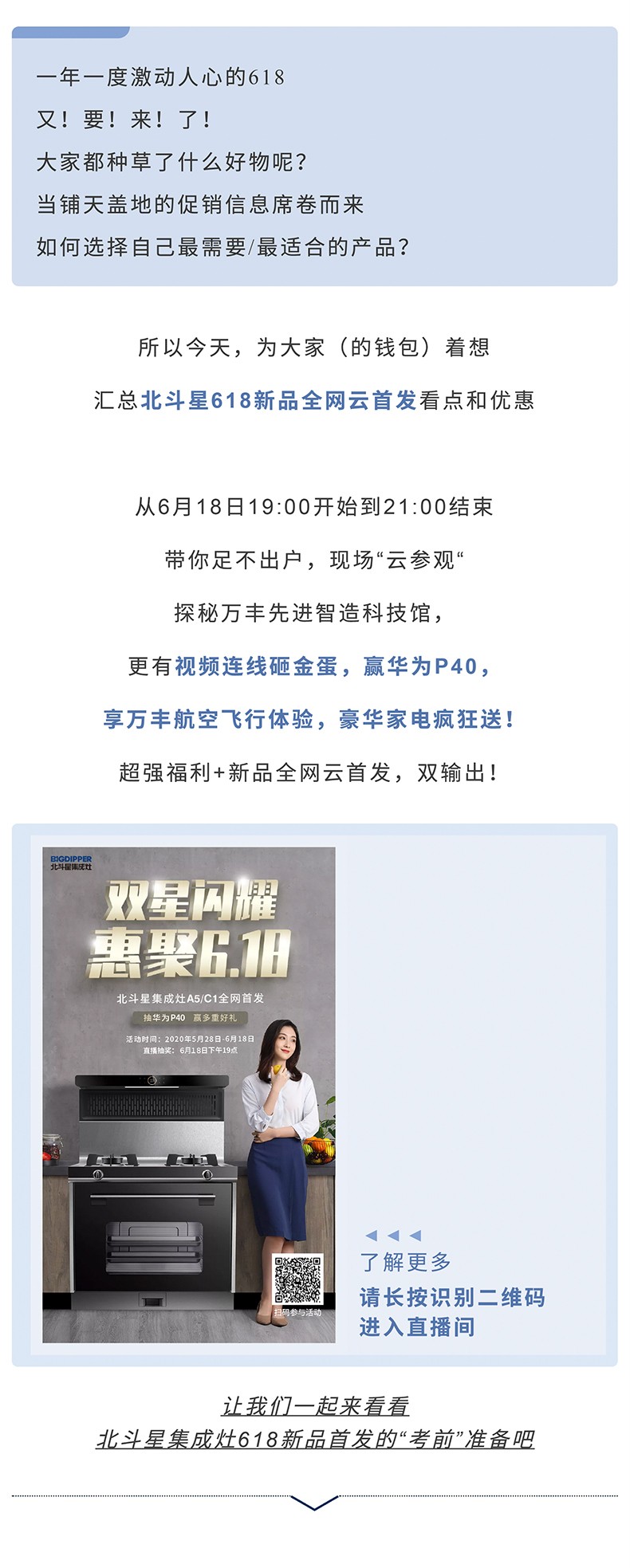 雙星閃耀,惠聚618!北斗星集成灶新品全網云首發