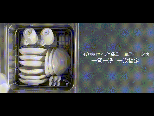 6套40件餐具一次洗完,滿足四口之家,一餐一洗,一次搞定。還可以摸索出擺放技巧,還能放更多!甚至孩子的奶瓶、玩具,它都能洗,高溫噴淋消毒用著更放心。