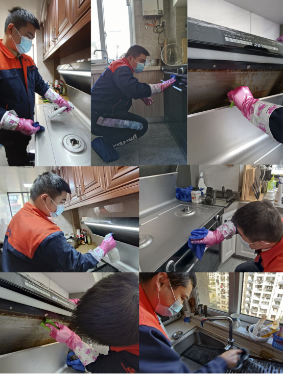 從清洗表面、取下擋煙板、清洗內腔和儲油盒,北斗星服務小哥每一次清洗維護皆細致入微,而且效率特別高!在上門開始服務小哥戴好口罩、穿好鞋套,經過細致妥帖的專業清洗,讓集成灶瞬間潔凈如新。