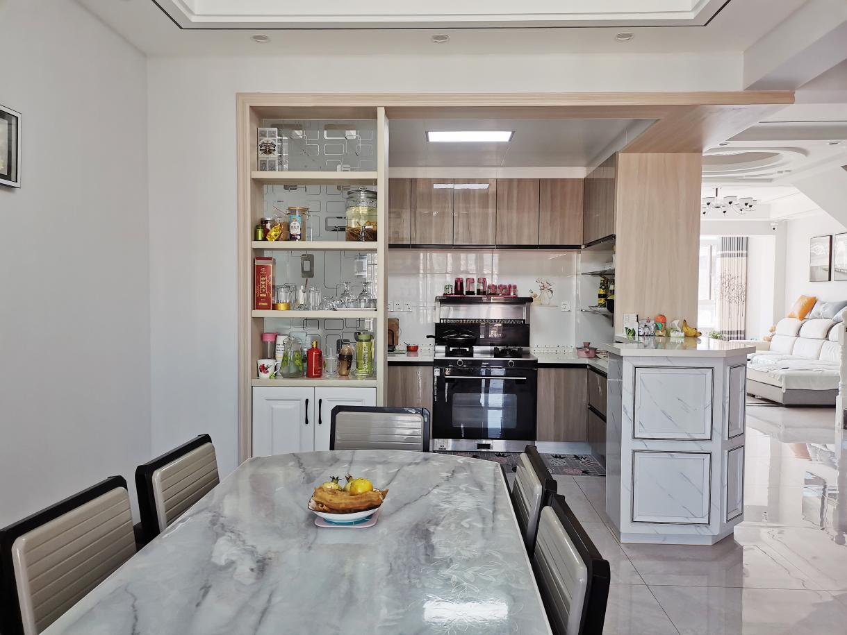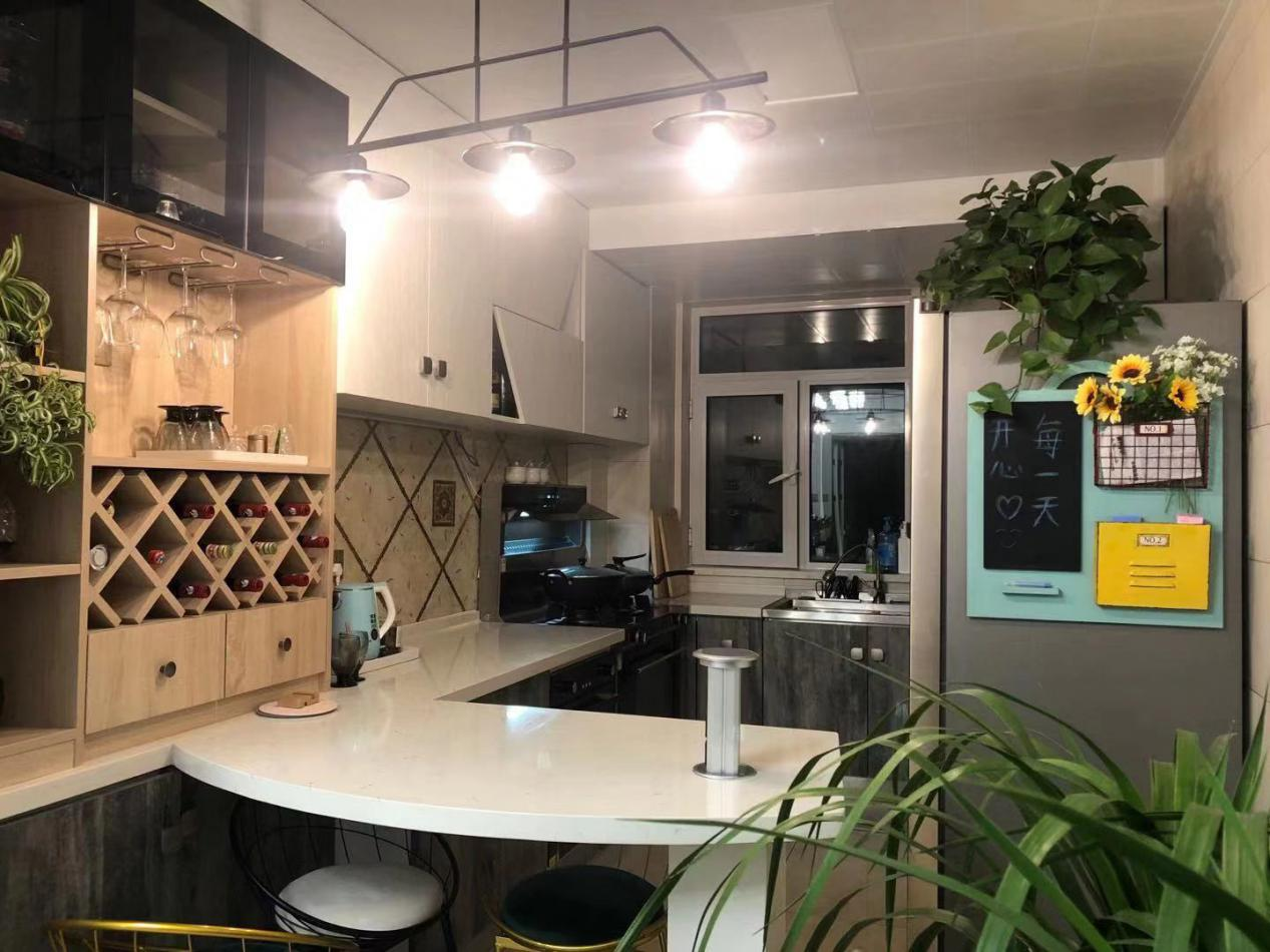 小空間的巧妙利用,透著熊先生夫婦二人認真的生活態度,以及對精致和品味的追求,小空間,強收納,讓廚房變得整潔有序,干凈又舒適。在這樣精巧,雅致的烹飪區,北斗星集成灶營造了一個無煙廚房,在這里為家人蒸炒,平淡的日子也會因愛升溫。小吧臺的完美分割,讓每個夜晚都有點故事。