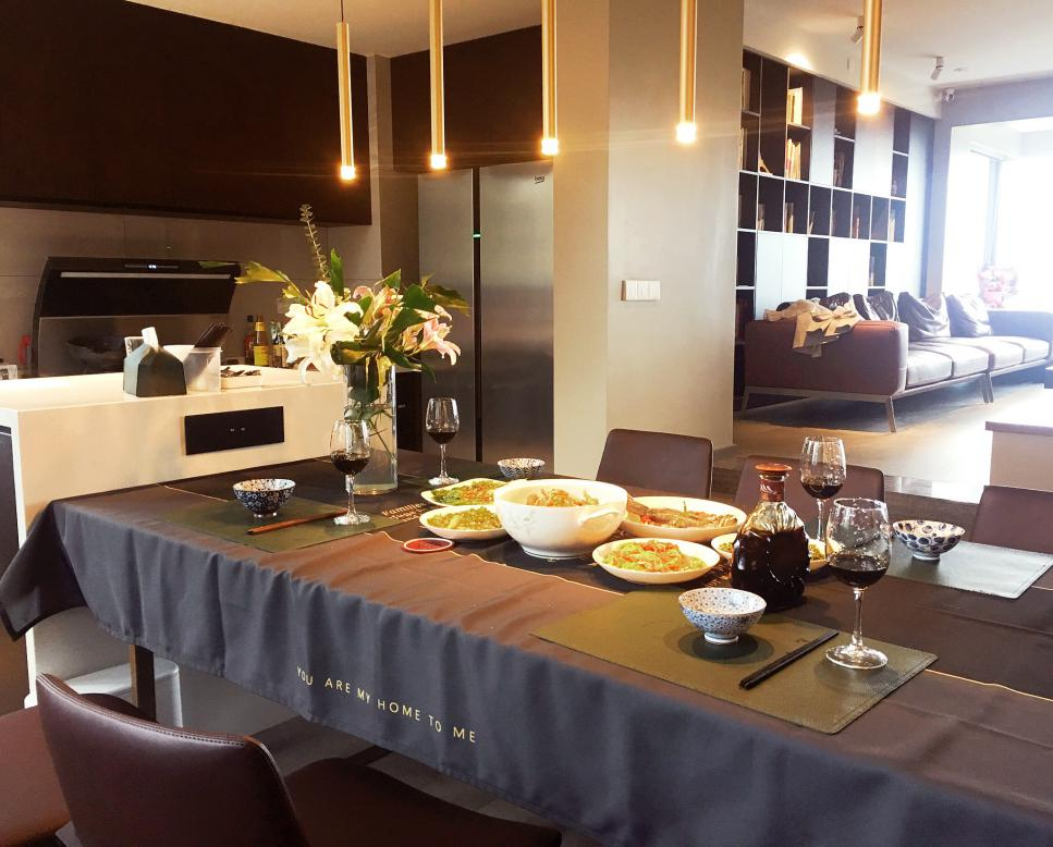 餐廳和廚房是居家生活的重要場所,是一家人忙碌后聚在一起,最有愛意的時刻。跟傳統廚房相比,開放式廚房是對室內空間結構的改變,它改變的、拆除的不僅僅是一扇門,而是讓廚房發生的一切在眼前呈現,有種參與感。