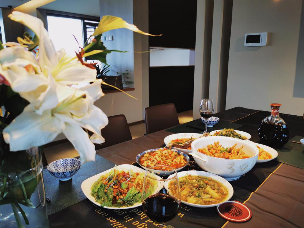 屋主不但每一餐都用心烹飪,還很善于營造幸福的氛圍,鮮花與美酒作為愛意的點綴,分分鐘愛上,更有點羨慕這份就餐的精致感和儀式感。對于忙碌的人,家里飄散好聞的飯菜香,大概是生活里最好聞的味道吧。