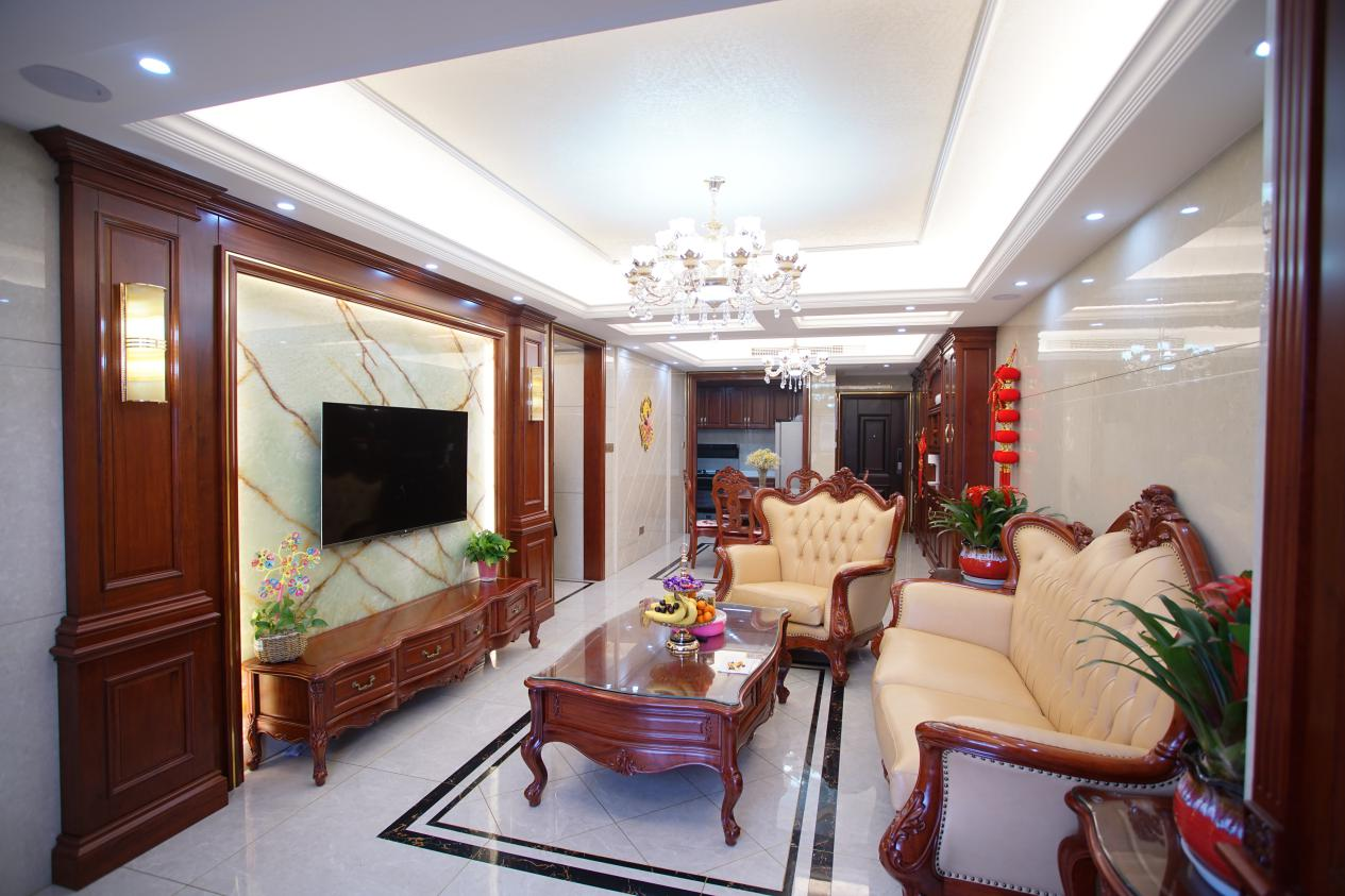 新中式客廳優雅而有氣質,將古典元素和現代元素相結合起來, 營造出一種復古清新的意境感。設計以“簡”為道, 通過對材質、色彩、造型、氛圍等細節的著重拿捏,營造出富有品質感的居住環境。新中式客廳家具形態上更加簡潔, 用墻面淺色系、沙發、天花板吊燈裝修房間,再搭配深色色系的木地板+茶幾+電視背景墻,給人簡約大方、高貴典雅的感受。為平衡房屋整潔美觀,舍棄了繁瑣的裝飾、奢華空間裝飾,去掉零碎空間劃分,簡單而不簡約。