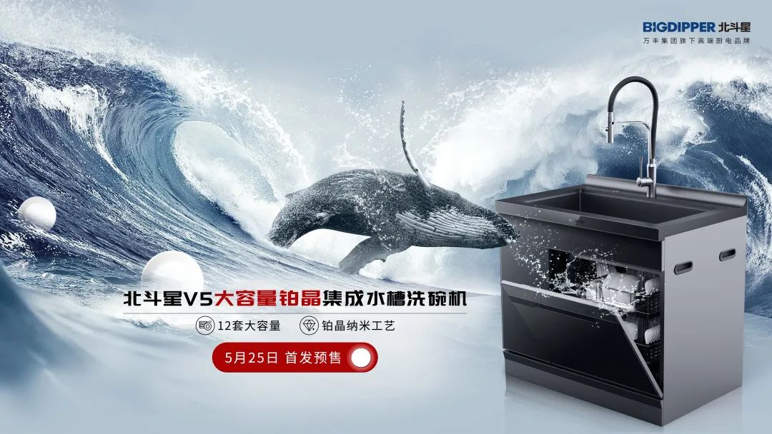 正值618年中大促,同樣是北斗星五周年廠慶。北斗星V5大容量鉑晶集成水槽洗碗機首發預售,延續了品牌的精工品質,以造飛機的態度造集成廚電,大師級設計,大師級工藝,打造出大師之作!