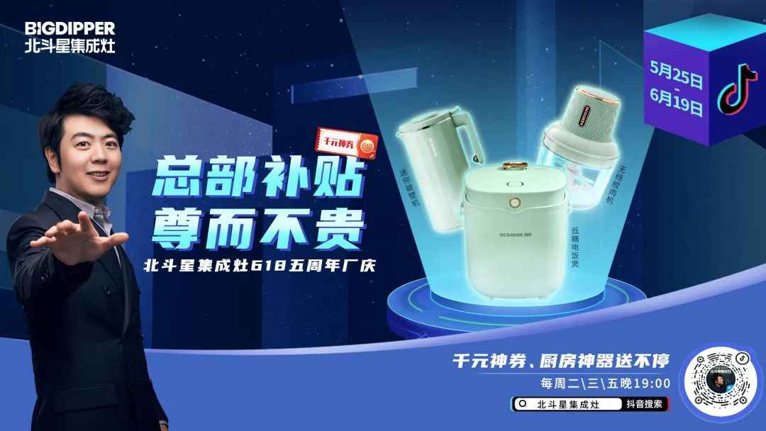 5月25日-6月19日,北斗星集成灶618五周年廠慶,正在進行中!每周2、3、5 晚19:00,來【北斗星集成灶】抖音直播間,千元神券、廚房神器送不停!入手北斗星,感受不一樣的廚房體驗!