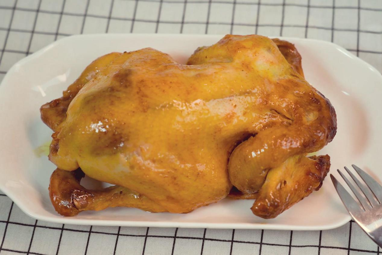 5. 打開北斗星蒸烤一體集成灶,選擇烤,調至濕烤模式,165度55分鐘,預熱后把雞放入,雞胸朝下即可;
