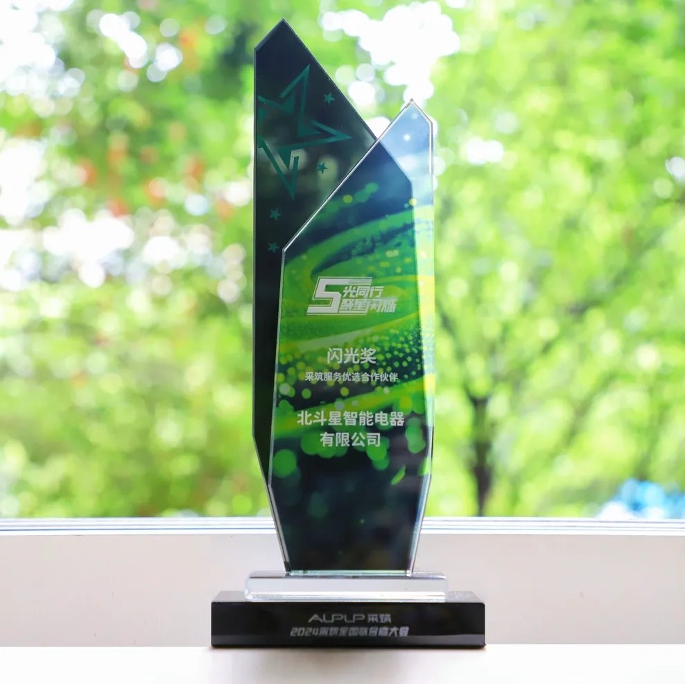 在大會上,采筑特別設置了“5光同行”表彰環節,北斗星智能電器一舉斬獲由采筑頒發的采筑服務優選合作伙伴“閃光獎”,成為行業矚目焦點!這不僅是對北斗星過往合作成果的肯定,更是對未來雙方繼續深化合作、積極融入兩江新區發展的期許。