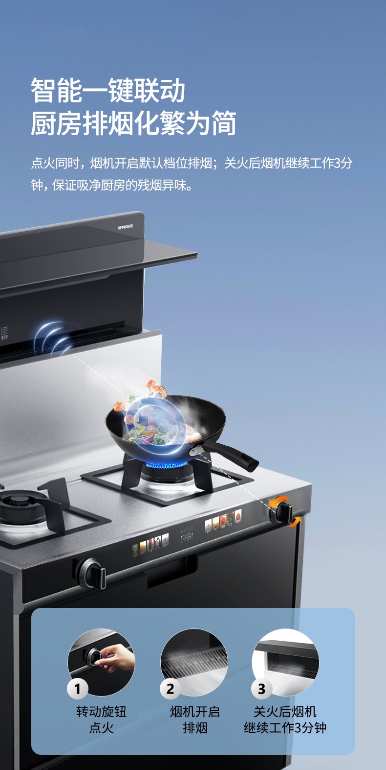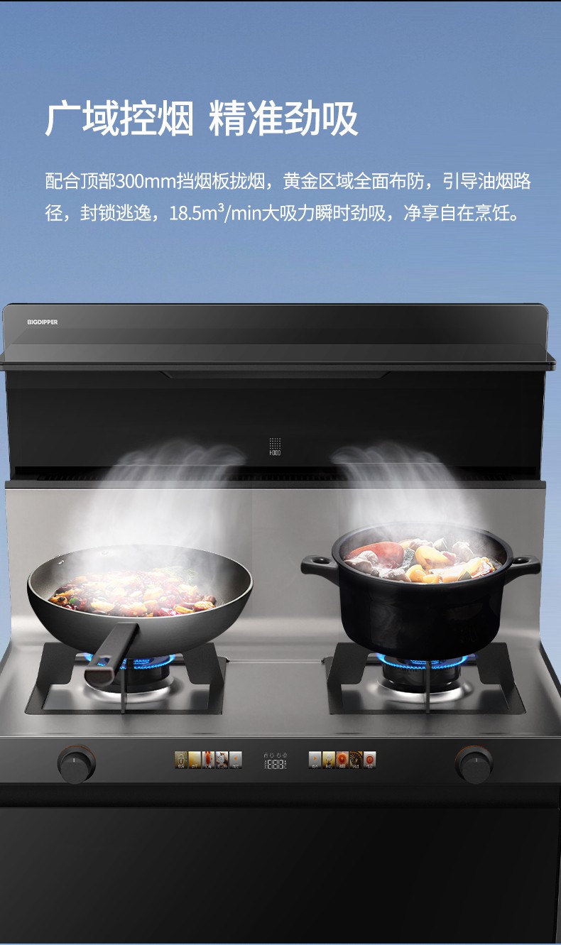 18.5m³/min爆炒風量,面對爆炒濃煙也可急速吸凈