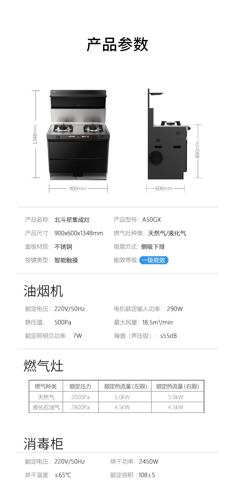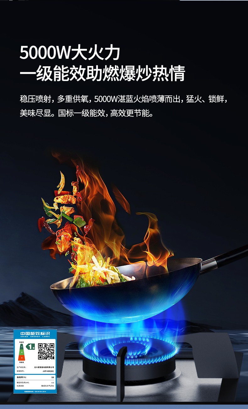 5.0kW爆炒火力,國標一級能效雙灶